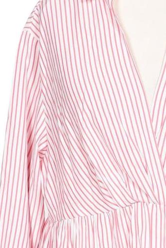 | Détails | volants, Manches trois-quarts, Encolure en V, Patte de boutonnage avant, Rayures |
