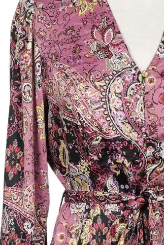 | Détails | Satin, Manches longues, Ceinture, Cache-cœur, Encolure en V, Fleuri |