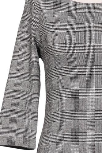 | Détails | Grosse maille, Manches trois-quarts, Col rond, Carreaux |