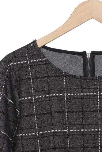 | Détails | Col rond, Fermeture éclair/boutons arrière, Carreaux |