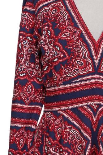| Détails | Manches longues, Encolure en V, Paisley |