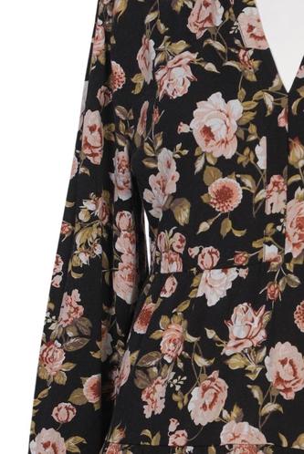 | Détails | volants, Manches longues, Encolure en V, Fleuri |