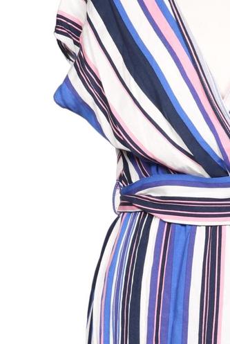 | Détails | Jersey, Manches courtes, Ceinture, Cache-cœur, Encolure en V, Rayures |