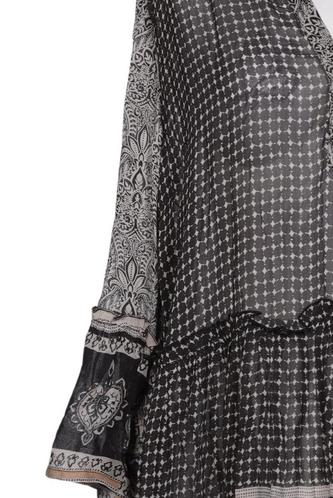 | Détails | volants, Chiffon, Manches trois-quarts, Encolure en V, Ethnique |