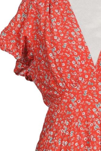 | Détails | volants, Manches courtes, Encolure en V, Fleuri |