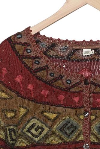 | Détails | Grosse maille, Manches longues, Col rond, Patte de boutonnage avant, Ethnique |