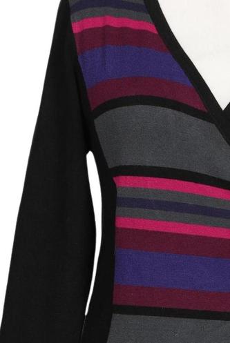 | Détails | Grosse maille, Manches trois-quarts, Encolure en V, Rayures |