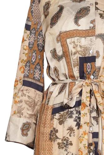 | Détails | Satin, Manches longues, Ceinture, Col rond, Patte de boutonnage avant, Fleuri |