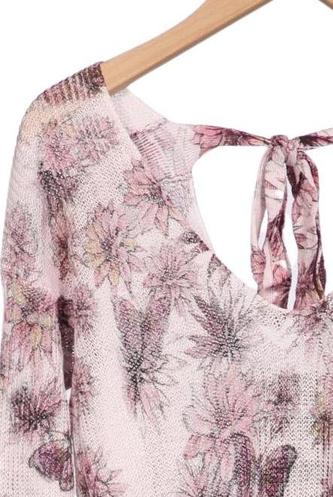 | Détails | Grosse maille, Manches longues, Encolure en V, Fleuri |