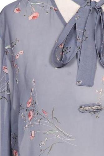 | Détails | Chiffon, Manches longues, Encolure en V, Sans fermeture, Fleuri |