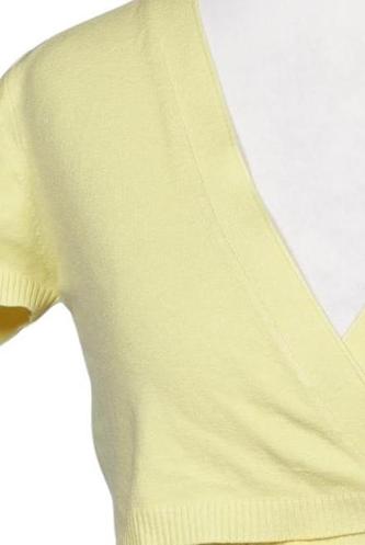 | Détails | Lacets, Grosse maille, Manches courtes, Cache-cœur, Encolure en V, Sans fermeture, Uni |