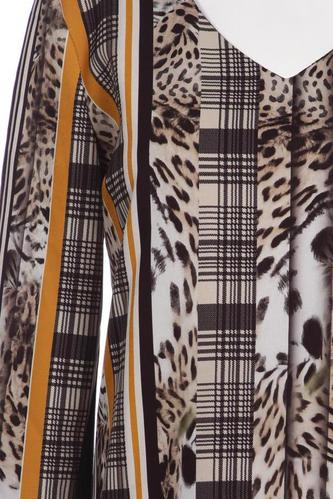 | Détails | Jersey, Manches longues, Encolure en V, Léopard, Rayures |