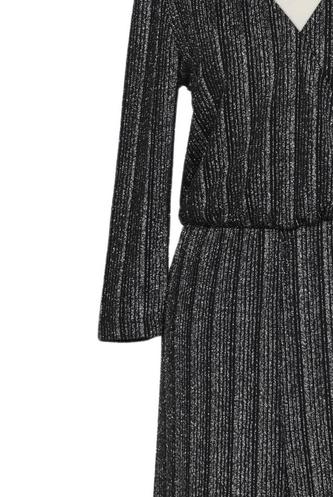 | Détails | Métallique, Grosse maille, Manches trois-quarts, Encolure en V, Fermeture éclair/boutons arrière, Rayures |