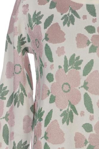 | Détails | Grosse maille, Manches longues, Col rond, Fleuri |