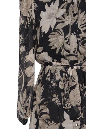 | Détails | Chiffon, Manches longues, Ceinture, Col rond, Patte de boutonnage avant, Fleuri |