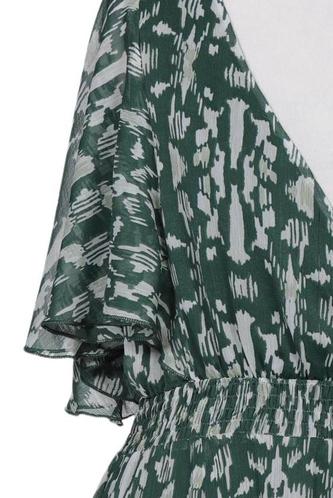 | Détails | volants, Chiffon, Manches courtes, Encolure en V, Élastique/cordon de serrage, Fleuri |