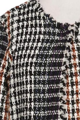 | Détails | Franges, Grosse maille, Manches longues, Col rond, Patte de boutonnage avant, Carreaux |