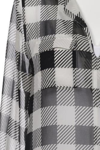 | Détails | Chiffon, Manches longues, Encolure en V, Sans fermeture, Carreaux |