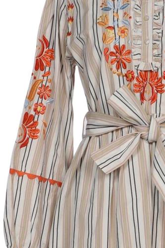 | Détails | Broderie, Manches longues, Ceinture, Encolure en V, Patte de boutonnage avant, Fleuri, Rayures |