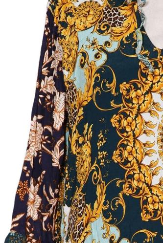 | Détails | volants, Chiffon, Manches trois-quarts, Encolure en V, Fleuri, Imprimé à motifs |