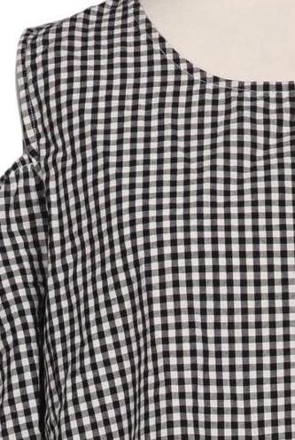| Détails | Broderie, Manches courtes, Col rond, Sans fermeture, Carreaux |