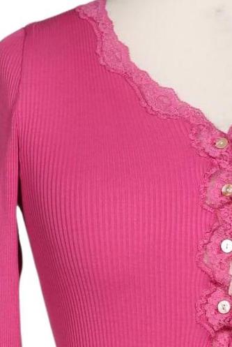 | Détails | Dentelles, Grosse maille, Manches longues, Encolure en V, Patte de boutonnage avant, Uni |