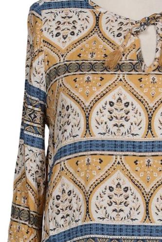 | Détails | Chiffon, Manches longues, Encolure en V, Ethnique |