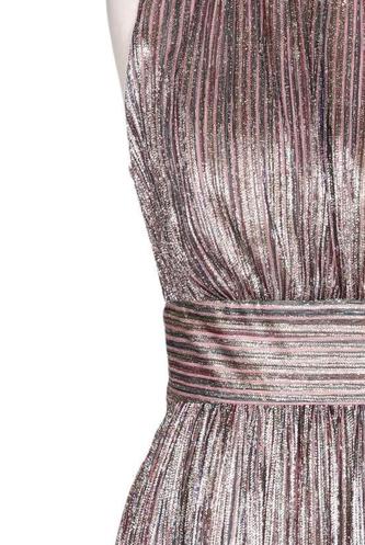 | Détails | Satin, Plissé, Métallique, Sans manches, Col rond, Fermeture éclair/boutons arrière, Rayures |