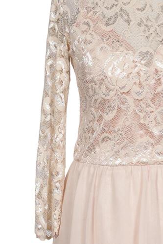 | Détails | Dentelles, Chiffon, Manches trois-quarts, Encolure en V, Fermeture éclair/boutons arrière, Fleuri |
