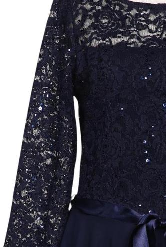 | Détails | Sequins, Dentelles, Chiffon, Manches longues, Ceinture, Col rond, Fermeture éclair/boutons arrière, Uni |