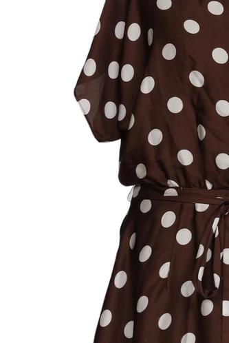 | Détails | Satin, Manches courtes, Ceinture, Col rond, Fermeture éclair/boutons arrière, À pois |