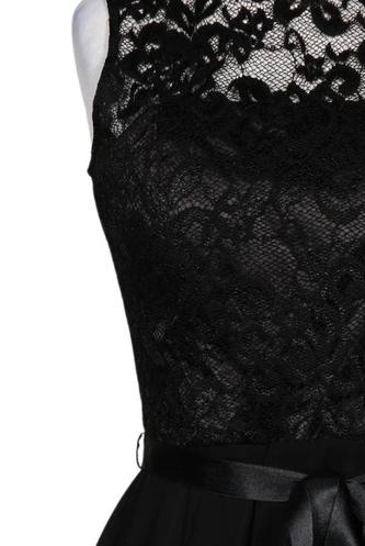 | Détails | Dentelles, Chiffon, Sans manches, Ceinture, Col rond, Fermeture éclair/boutons arrière, Uni |