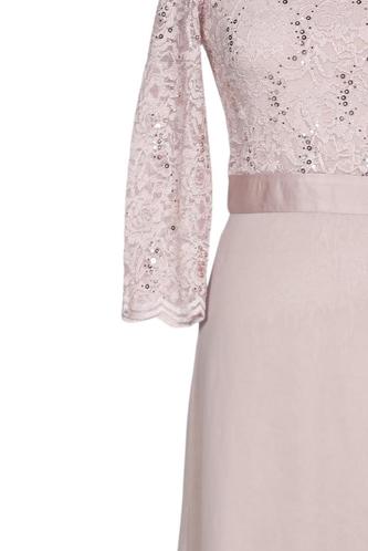 | Détails | Satin, Sequins, Dentelles, Manches trois-quarts, Ceinture, Col rond, Fermeture éclair/boutons arrière, Fleuri |