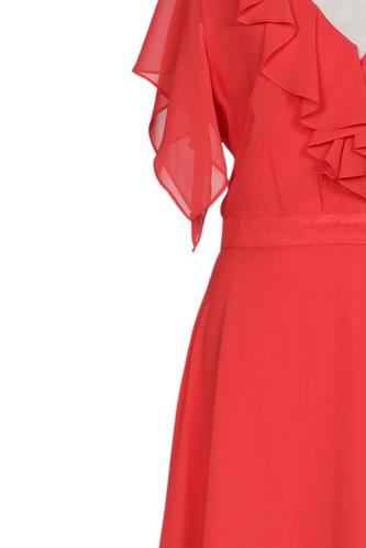 | Détails | volants, Chiffon, Manches courtes, Encolure en V, Fermeture éclair/boutons arrière, Uni |