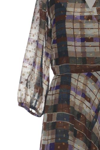 | Détails | Chiffon, Manches trois-quarts, Ceinture, Cache-cœur, Encolure en V, Carreaux |