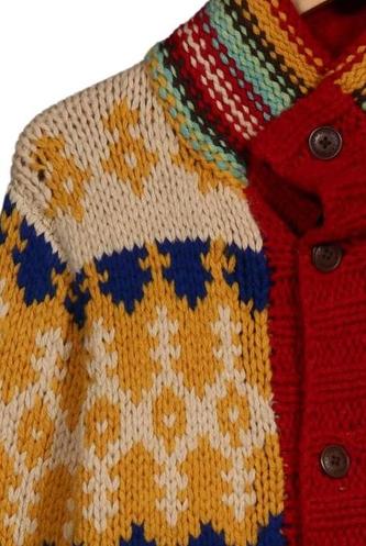 | Détails | Grosse maille, Col rond, Patte de boutonnage avant, Ethnique |