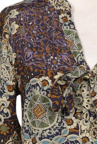 | Détails | Manches longues, Encolure en V, Sans fermeture, Ethnique |