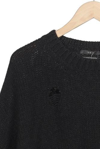 | Détails | Découpes, Grosse maille, Manches courtes, Col rond, Effet usé |