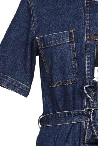 | Détails | jeans, Manches courtes, Ceinture, Col rond, Patte de boutonnage avant, Uni |
