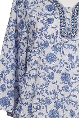 | Détails | Broderie, Manches trois-quarts, Encolure en V, Fleuri |