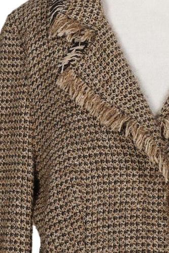 | Détails | Franges, Grosse maille, Manches longues, Encolure en V, Patte de boutonnage avant, Carreaux |