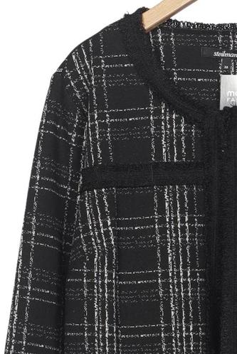 | Détails | Grosse maille, Patte de boutonnage avant, Carreaux |