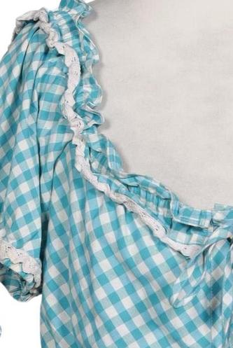 | Détails | Dentelles, volants, Broderie anglaise, Manches courtes, Patte de boutonnage avant, Carreaux |