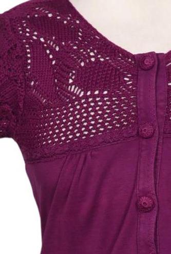 | Détails | Jersey, Broderie anglaise, Manches courtes, Patte de boutonnage avant, Uni |