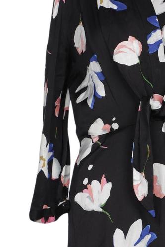 | Détails | Satin, Manches trois-quarts, Ceinture, Encolure en V, Fleuri |