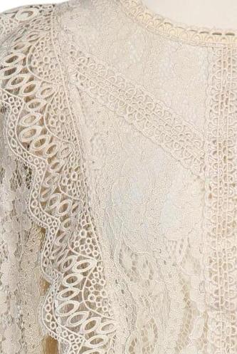 | Détails | Dentelles, Crocheté, Manches longues, Col rond, Sans fermeture |