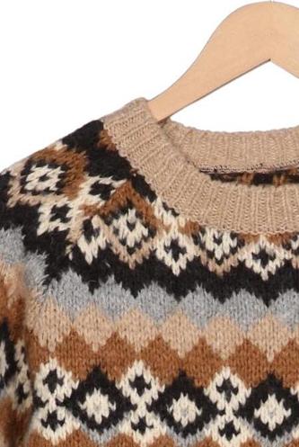| Détails | Grosse maille, Manches longues, Col rond, Ethnique |