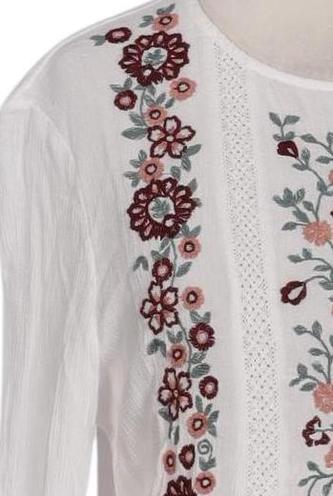 | Détails | Broderie, Manches longues, Col rond, Sans fermeture, Fleuri |