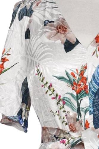 | Détails | Manches courtes, Ceinture, Encolure en V, Fleuri |