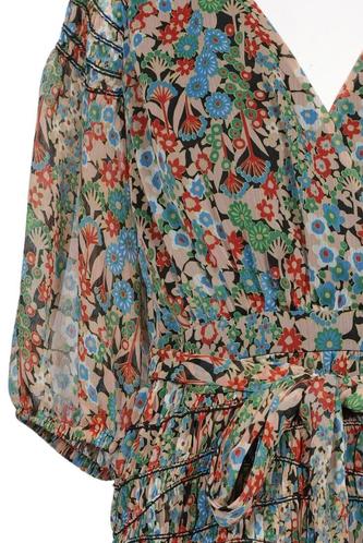 | Détails | volants, Chiffon, Manches courtes, Encolure en V, Élastique/cordon de serrage, Fleuri |